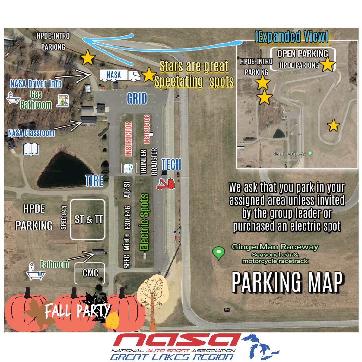 Paddock Maps and Traffic Flow - Always park perpendicular to the paddock roads.